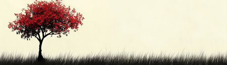 This stunning image showcases a vibrant red tree standing isolated against a calm horizon, symbolizing the beauty of autumn. The serene atmosphere makes it ideal for various projects.