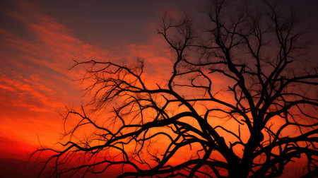 Tree silhouette over red dramatic sky