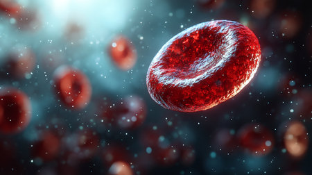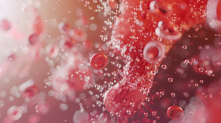 Stunning and depicting detailedion of red blood cells gracefully flowing through the bloodstream, showing their intricate structure and dynamic motion
