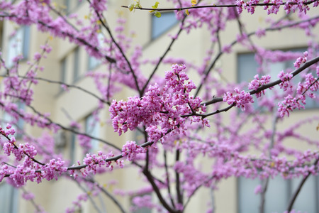 Close up shot of the eastern redbud blossom at Las Vegas, Nevada