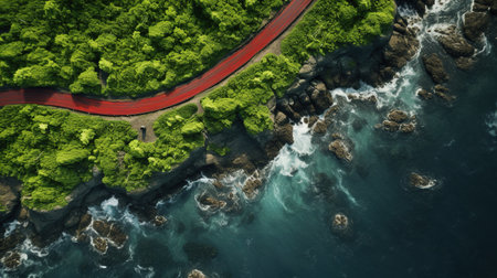 Generative AI, Aerial view of curved asphalt road near the ocean or sea, coastline