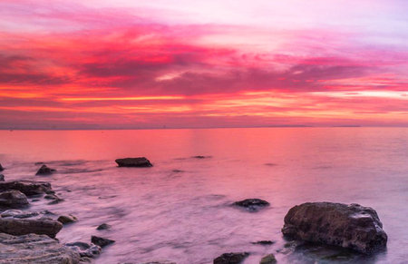 Sunset over a rocky beach in hallet cove. SA