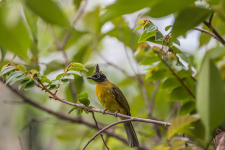 Black-crested bulbul (Pycnonotus flaviventris) on branch in forest