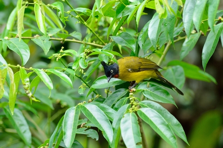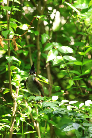 Black Crested Bulbul in the rain forest, Thailand