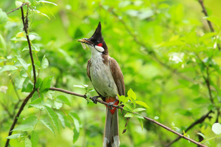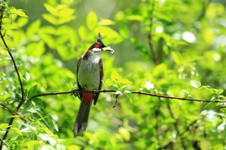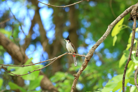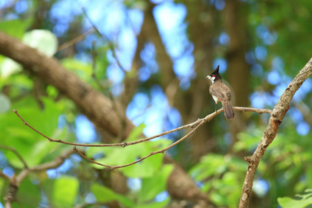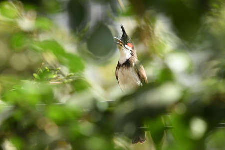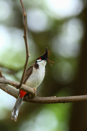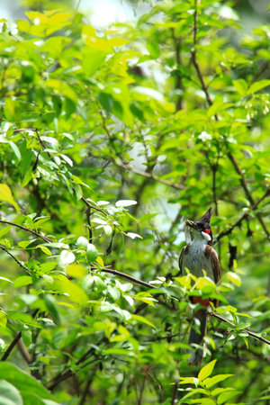 Red-whiskered bulbul (Pycnonotus jocosus), or crested bulbul bird perched in a tropical forest