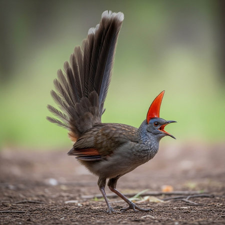 the red browed finch is mainly grey with a red beak and red strip over its eyes