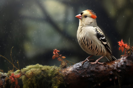 Red-capped manakin (Ceratopipra mentalis) sitting on a branch, Costa Rica