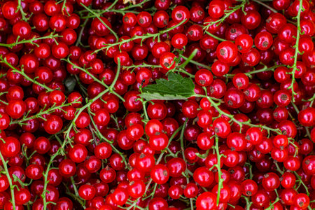 This image features a stunning arrangement of fresh red currants on a light background, highlighting their vibrant color and suitability for a variety of culinary uses.