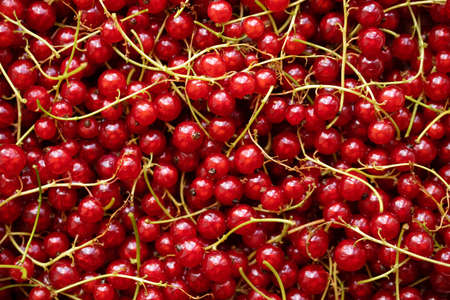 Freshly collected red currant berries. Natural background. Pile of ripe redcurrant berries.