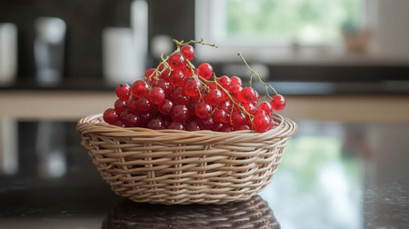 Beautifully arranged fresh red currants sit against a light background, emphasizing their vibrant color. Perfect for culinary designs, recipes, and healthy eating inspiration.