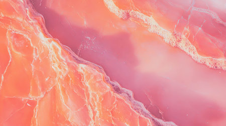 Glossy coral pink marble texture with dark brown veins for interior design and decor