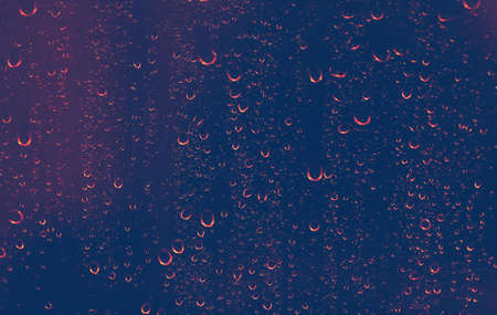 Rainy night background, rain drops in red light on the window at night, autumn season backdrop, abstract textured wallpaper, cold autumnal weather