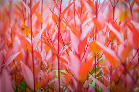 red tree leaves in the nature in autumn season, red background