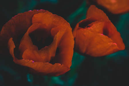 Red poppies on a dark background. Soft selective focus.