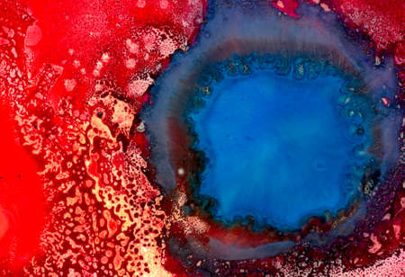 Abstract background in blue color, hand drawn alcohol painting, liquid ink technique
