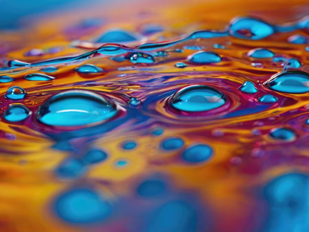 Colorful water surface with ripples and bubbles. Abstract background.