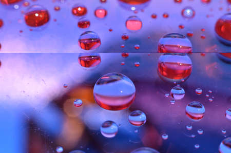abstract background of water drops on the surface of the oil. macro