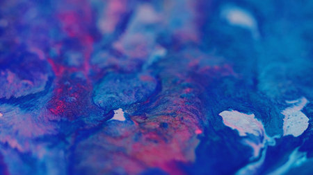 Abstract bright. Paint splash. Defocused sparkling blue pink colorful flows liquid magic smoky clouds turning on modern art background.