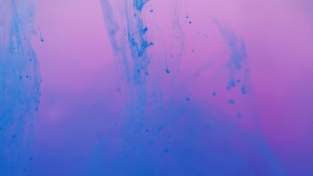 Blue pink clouds of ink in liquid