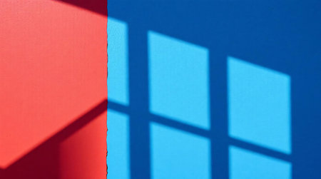 Window shadow on blue and red wall abstract background for design.