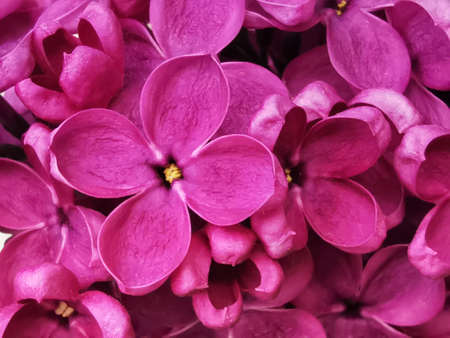 Purple-pink lilac close-up. Macro photography, floral natural background. Horizontal photo.
