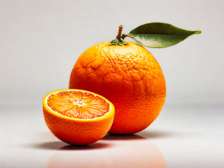 orange fruit and a sliced half on a light background. AI Generated
