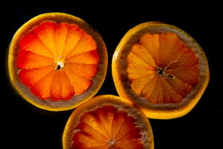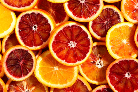 Round slices of orange and red citrus