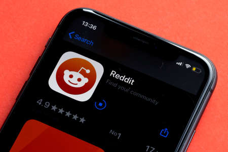 Vilnius, Lithuania - February 2 2021: Reddit app displayed on the smartphone, online social media network, close up