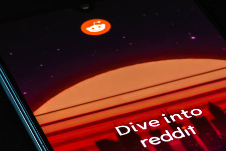 Dhaka, Bangladesh- 28 Oct 2025: An iPad displaying the Reddit app against a judge's gavel and dark keyboard background.