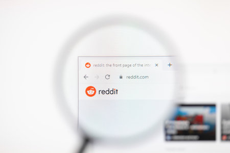 Odessa, Ukraine - December 17, 2020: Reddit website on monitor screen under magnifying glass.