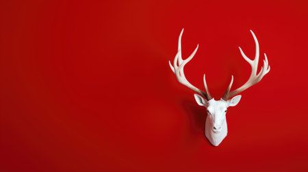 Minimal Christmas Magic: White Santa reindeer antlers on a bold red background, creating a simple yet festive holiday concept.