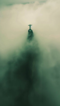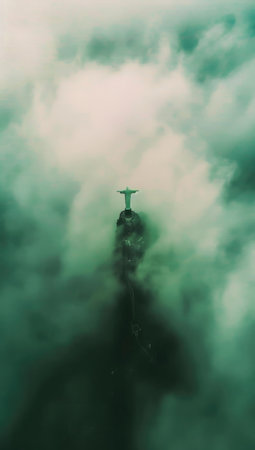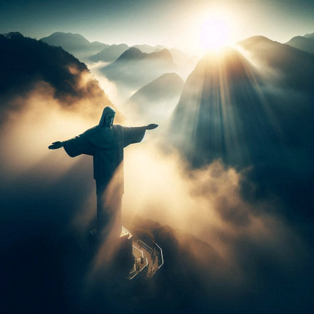 Majestic sunrise over a sea of clouds with the iconic Christ the Redeemer statue, symbolizing faith and tranquility.