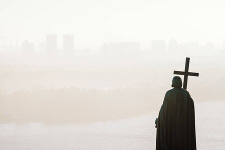 Vladimir Hill Park (Volodymyrska Hill). View of the city of Kiev in the fog. Historical monument in the capital of Ukraine