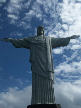 The giant Art Deco statue of Jesus, known as Cristo Redentor (Christ the Redeemer), on Corcovado mountain in Rio de Janeiro, Brazil. The statue is 125 feet tall and was completed in 1931.