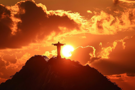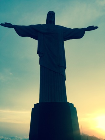 Christ Redeemer statue at Rio de Janeiro abstract shot at sunset time