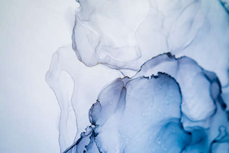 Abstract background in blue color, hand drawn alcohol painting, liquid ink technique