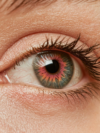Close-up view of a human eye highlighting intricate colors and reflective details
