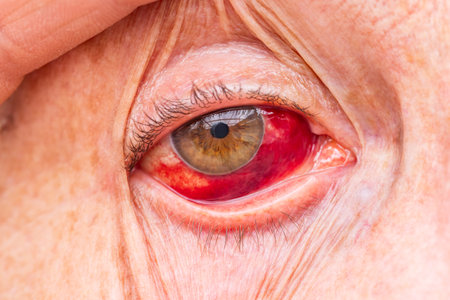 Eye injury, young man with burst blood vessel in eye, fatigue, problems with blood vessels