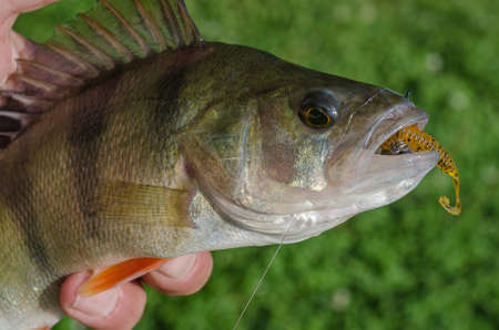 caught perch on silicon bait in the river
