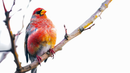 a red bird perches on a branch, delicately holding raindrops in a hyper-realistic animal illustration. this stunning artwork, created by the talented artist antanas sutkus, showcases precise details and flat brushwork. with its 8k resolution, this contest-winning piece captivates viewers with its exacting precision and precisionist art style. ai generated