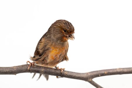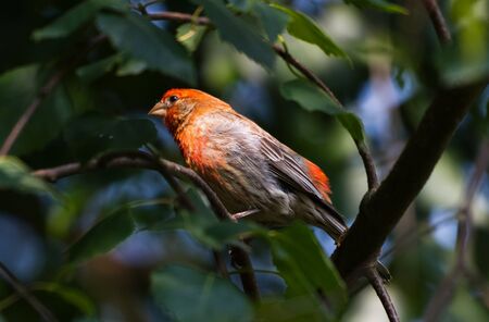House Finch Carpodacus mexicanus on a tree branch Adult males are rosy red around the face and upper breast