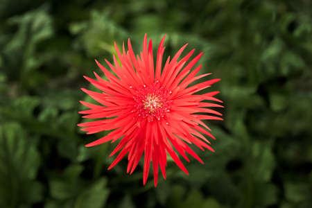 beautiful red flower on nature green leaves background.