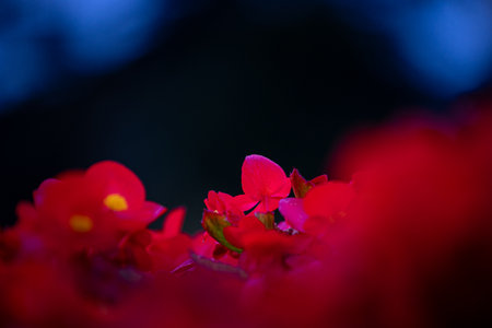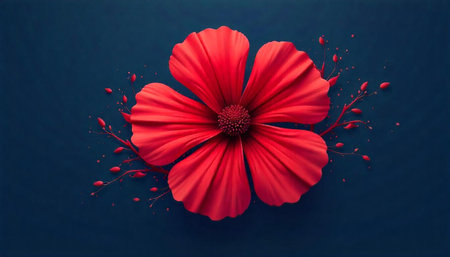 Dramatic red flower against dark blue background art illustration