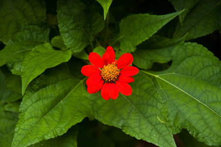 Red zinnia is thermophilic - an early autumn flower.