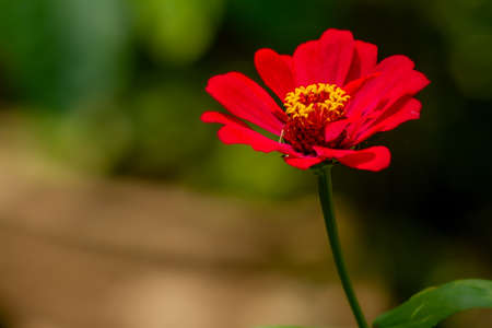Beautiful red Zinnia flower with blurred background. Natural background