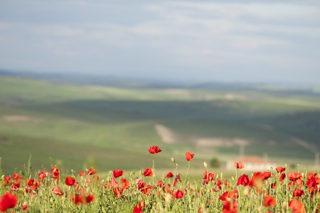 Field of poppy flowers in a countryside