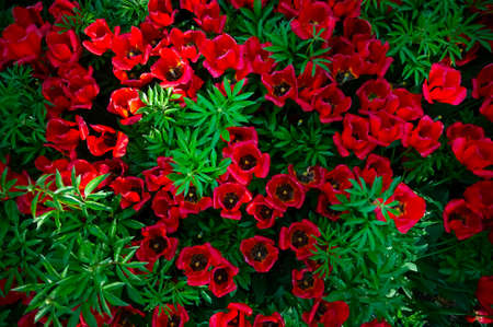 Beautiful bunch of red flowers close-up. full frame of red flowers. top view