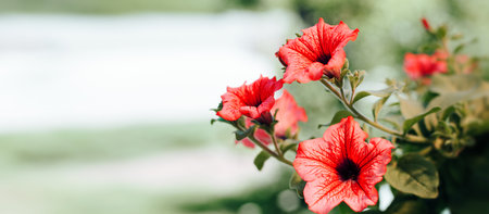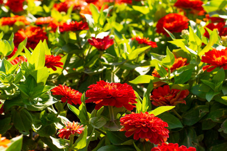Beautiful red begonia flowers blooming in the garden, stock photo
