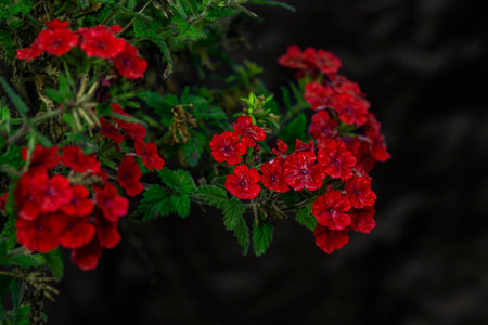 Bright flowers of hybrid Verbena blooming (Verbena tenera) Red phlox grows in the garden near the house.