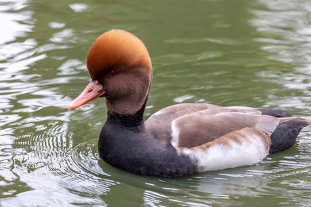 Close up view of a red-crested pochard (Netta rufina) duck.